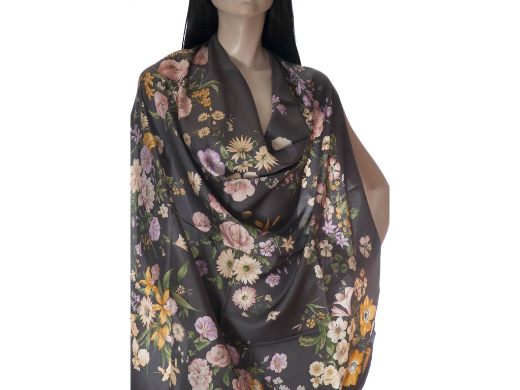 Velmi krásný hedvábný šátek od Christiana Diora je celkem neutrálních barev a bude slušet k mnoha věcem. Klasický vzor květin.