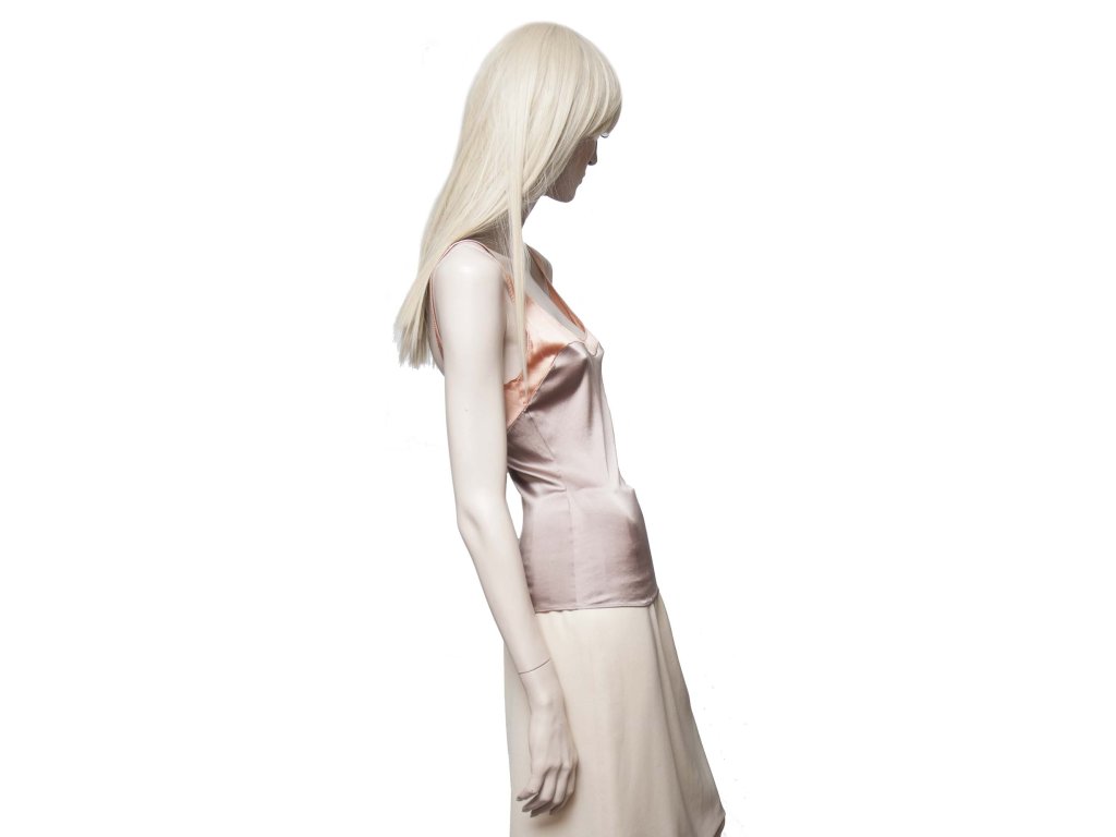 Luxusní hedvábný top legendární značky Chanel, která je rovněž synonynem vysoké kvality. Top Chanel je příjemných jemných pastelových barev z krásného hedvábí s příměší elastanu.