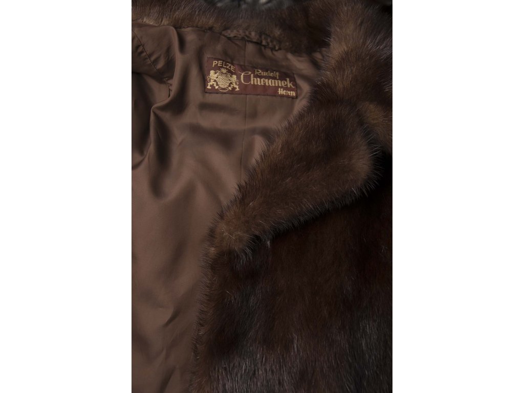 Krásný hnědý kožich z norkové kožišiny německé výroby.
