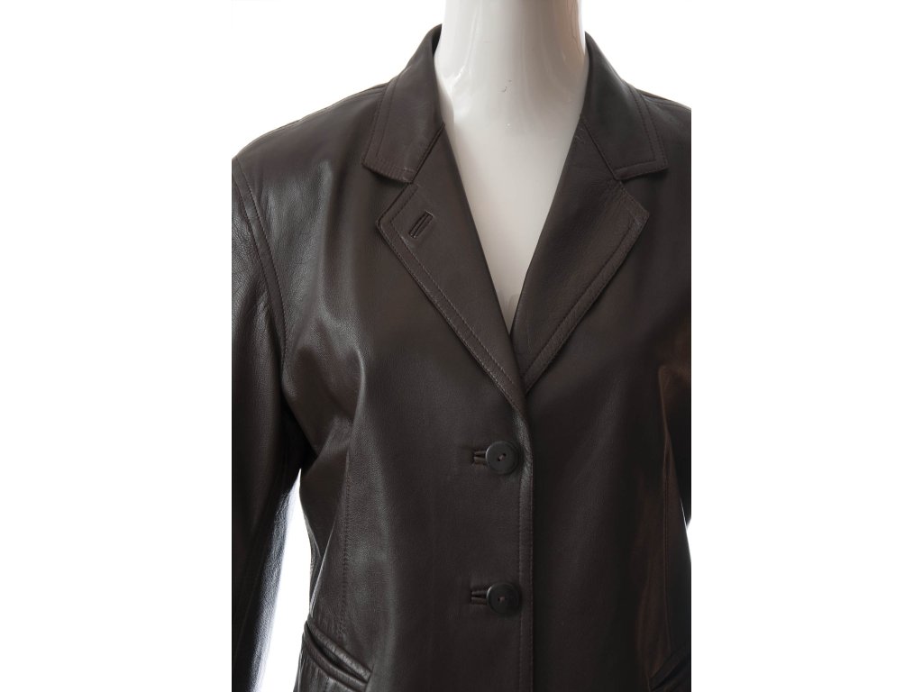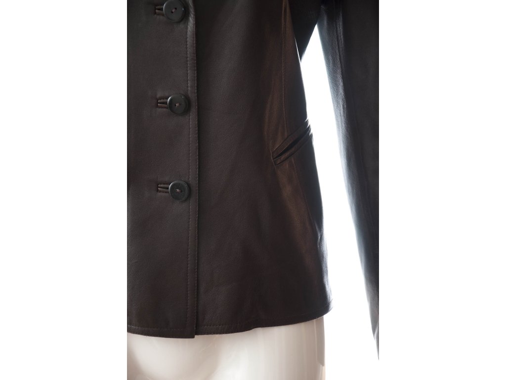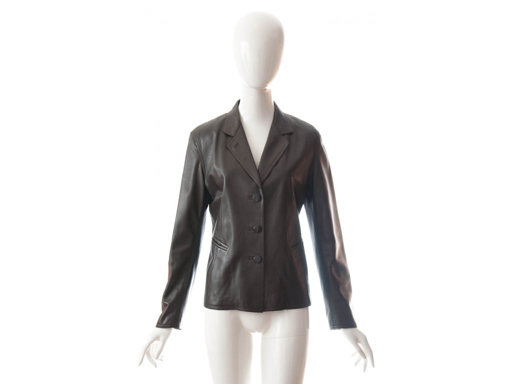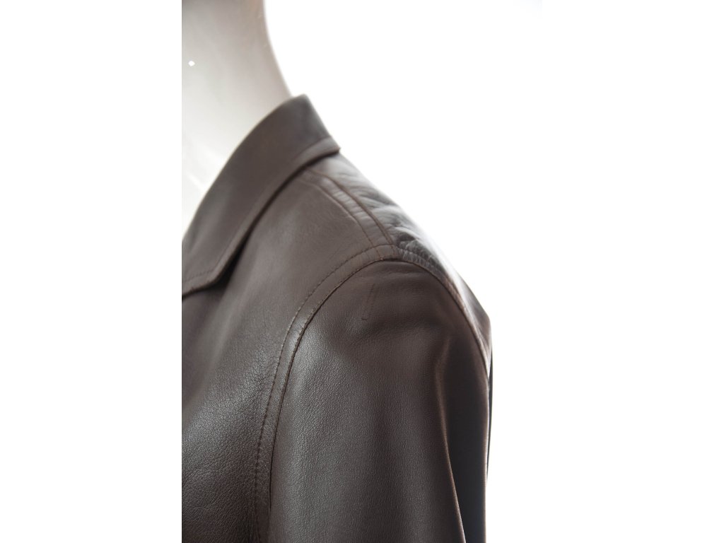 Úžasné kožené sáčko v hnědé barvě od Donny Karan. Sáčko je z příjemné měkké kůže a je to typ saka, který se hodí naprosto ke všemu a každý se v něm cítí skvěle. Sako je v pase malinko projmuté, což samozřejmě zvýrazní ženské křivky.