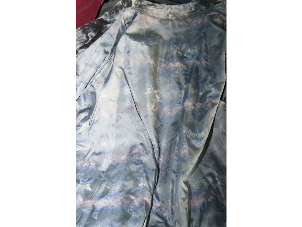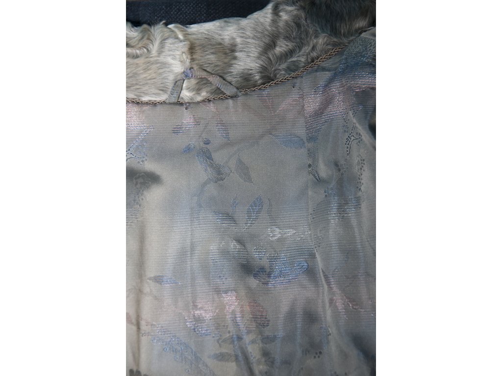 Krásný šedo stříbrný krátký kožíšek z mladého persiána. Kožíšek je ve velice pěkném vintage stavu, kožešina je lesklá a měkká. Podšívka má u krku několik malých direk, viz foto- proto tak skvělá cena. Na toto místo přitom můžete našít jiný materiál (krajku, stuhu) nebo udělat výšivku. Celou podšívku by byla škoda měnit, má jedinečný vzor.