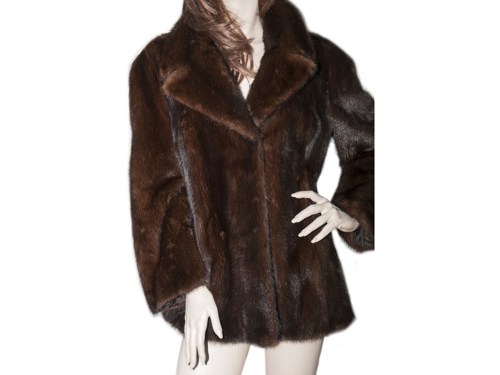 Krátky hnědý norkový kožich 36 38
