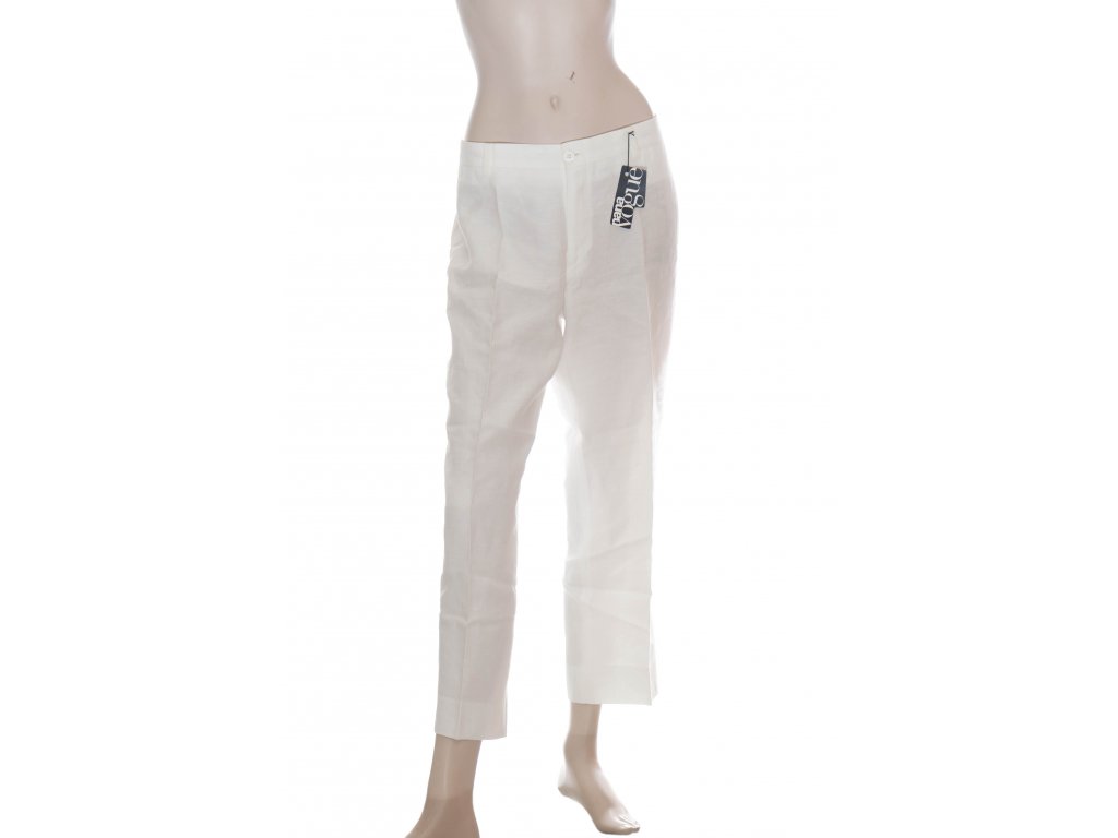 100% Capri luxusní bílé lněné kalhoty s puky 38 40