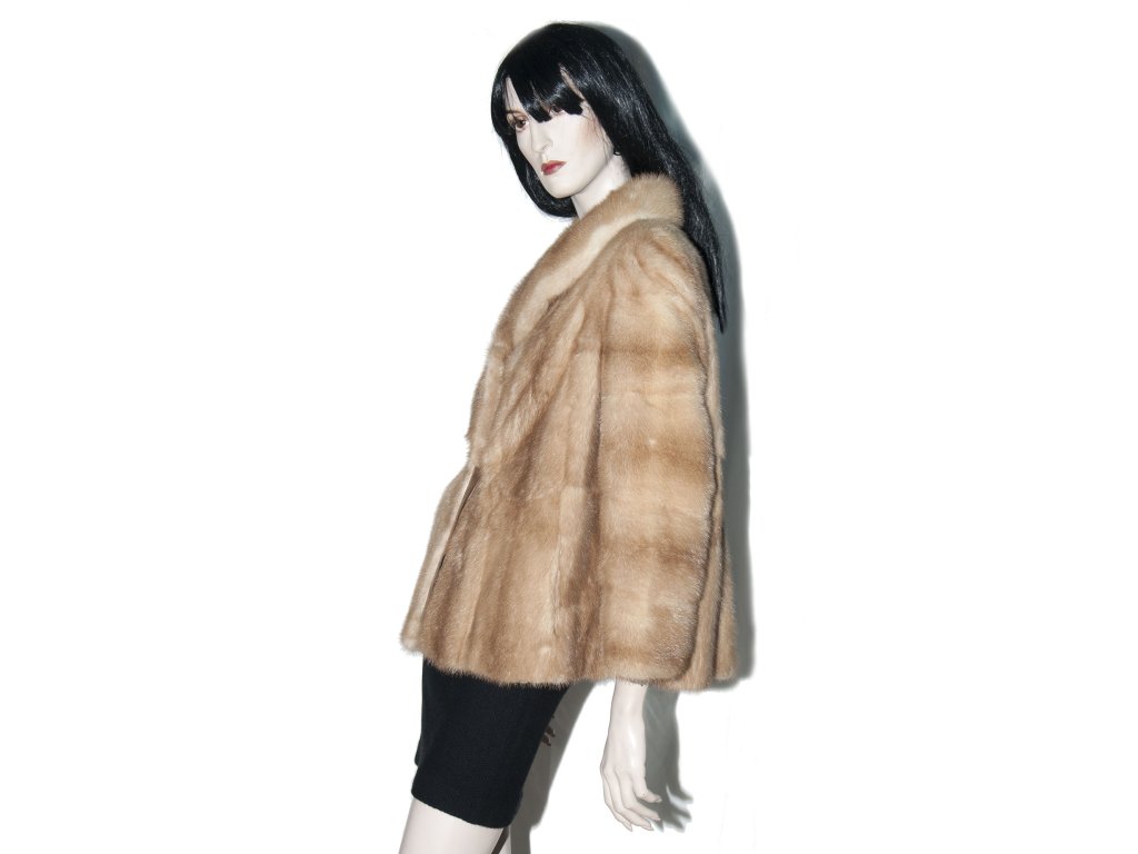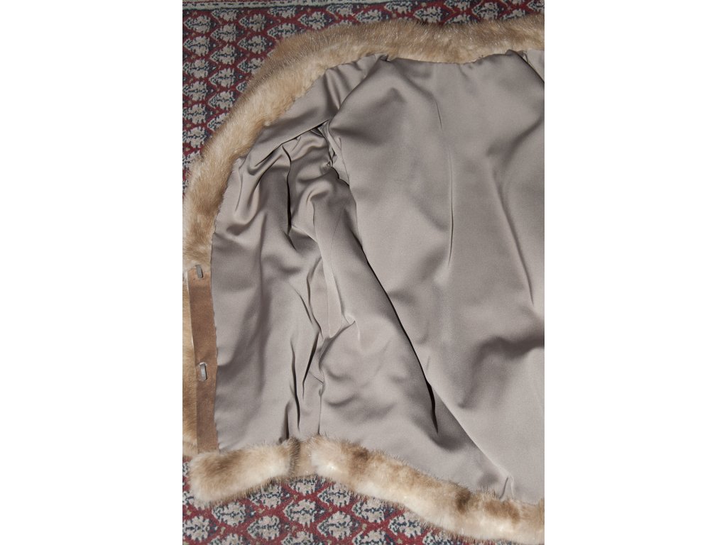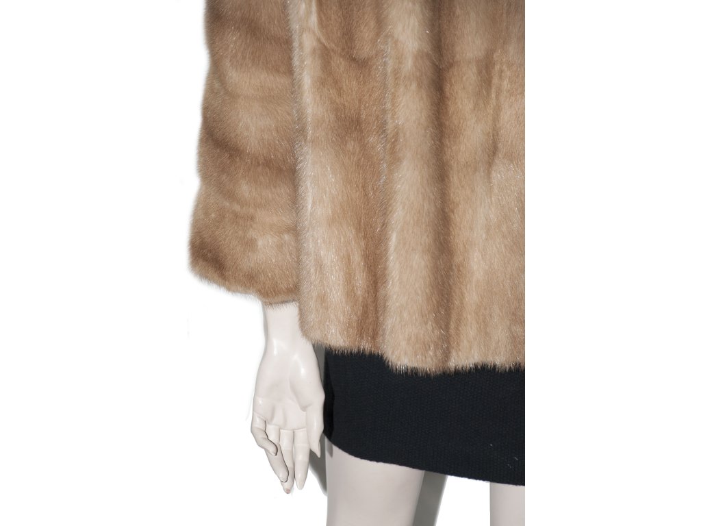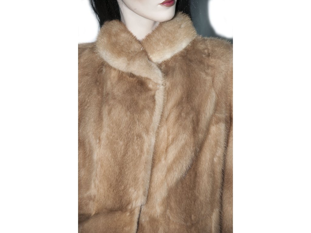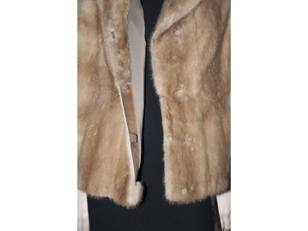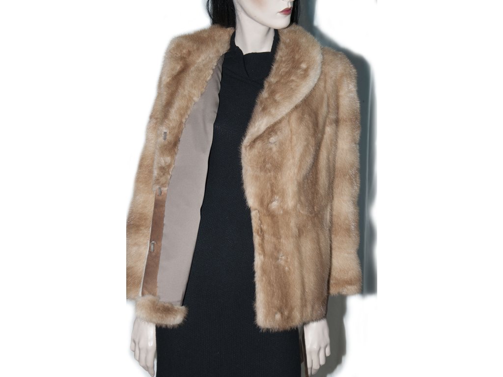 Krásný slušivý krátký norkový kožich s norka světle hnědé barvy, medového odstínu. Kožíšek byl na přední části nastaven, co je vidět pouze po rozepnutí, proto k ceně nabízíme 2000,- slevu. Krásný měkký kožíšek, sedí hezky na velikost cca 36..