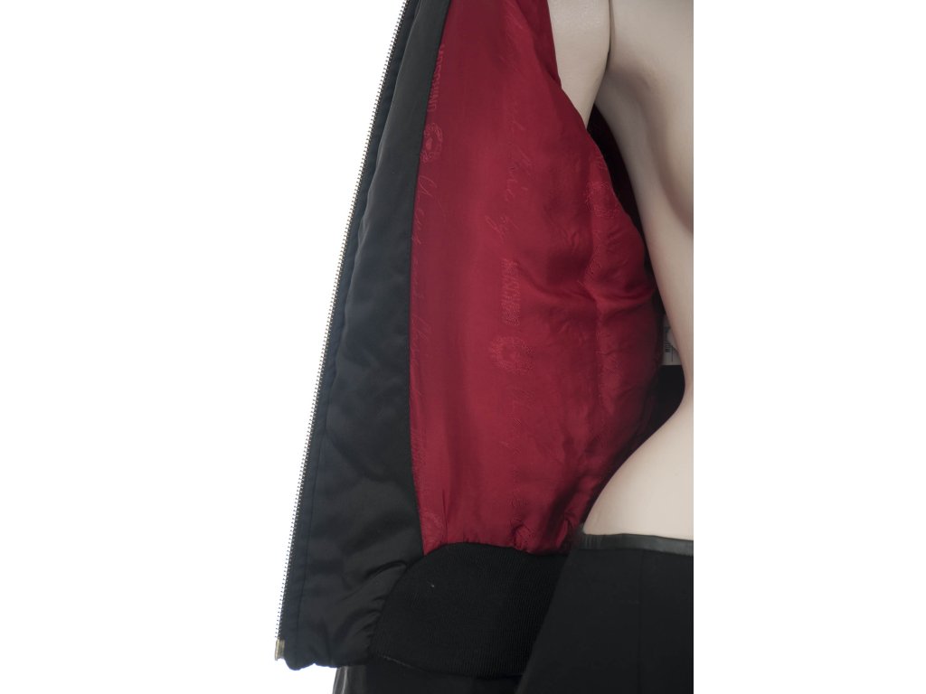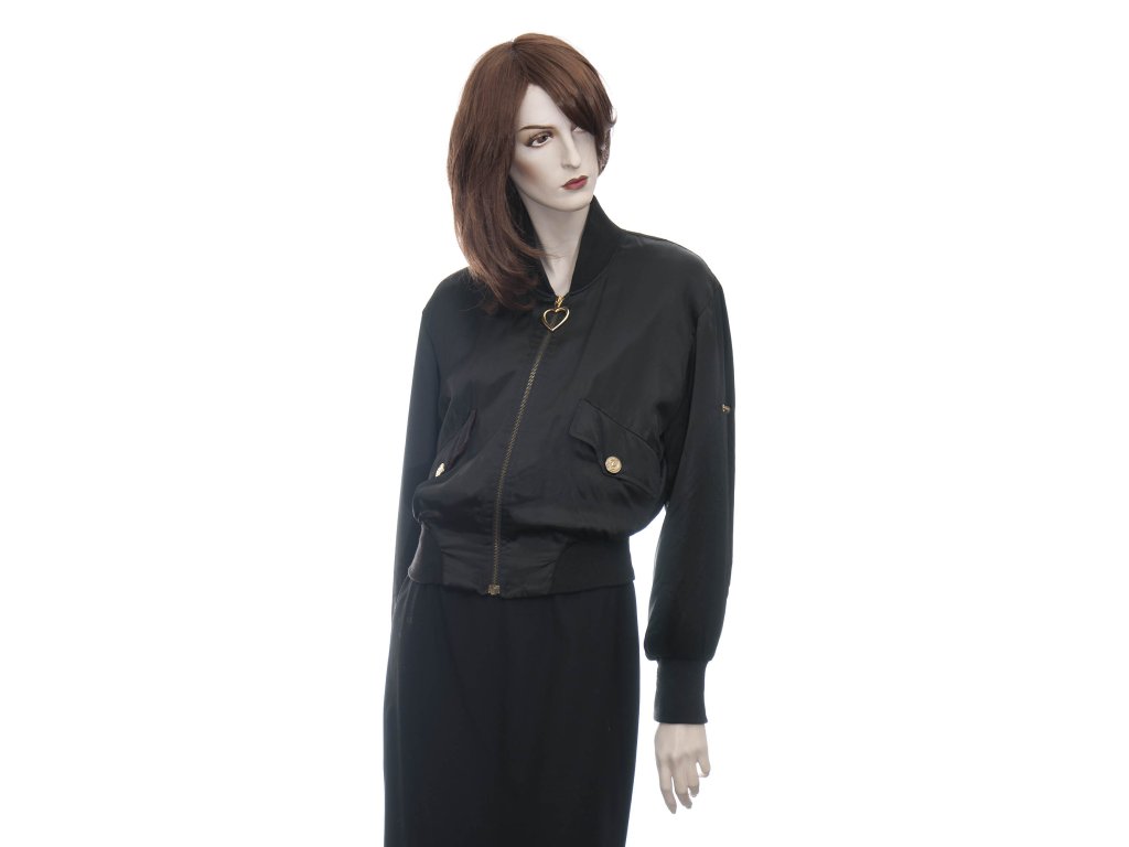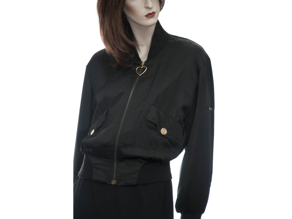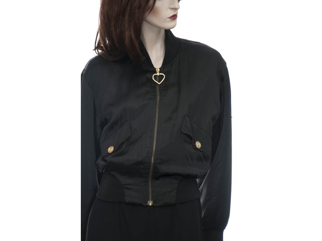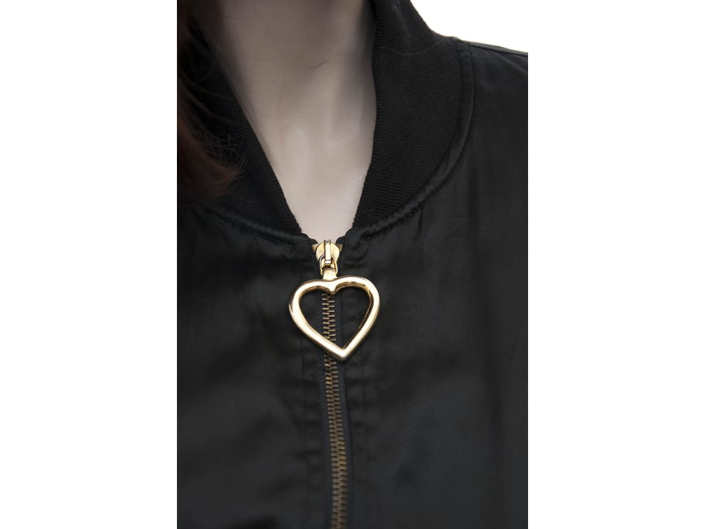 Stylový bomber s červenou podšívkou a kovovým srdcem na jezdci zipu. Bunda lehce avangardní a vtipná "klasika" od Moschina.