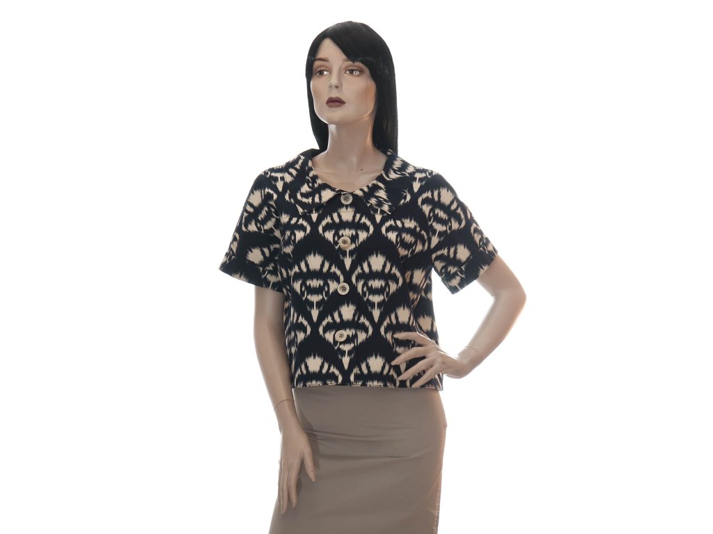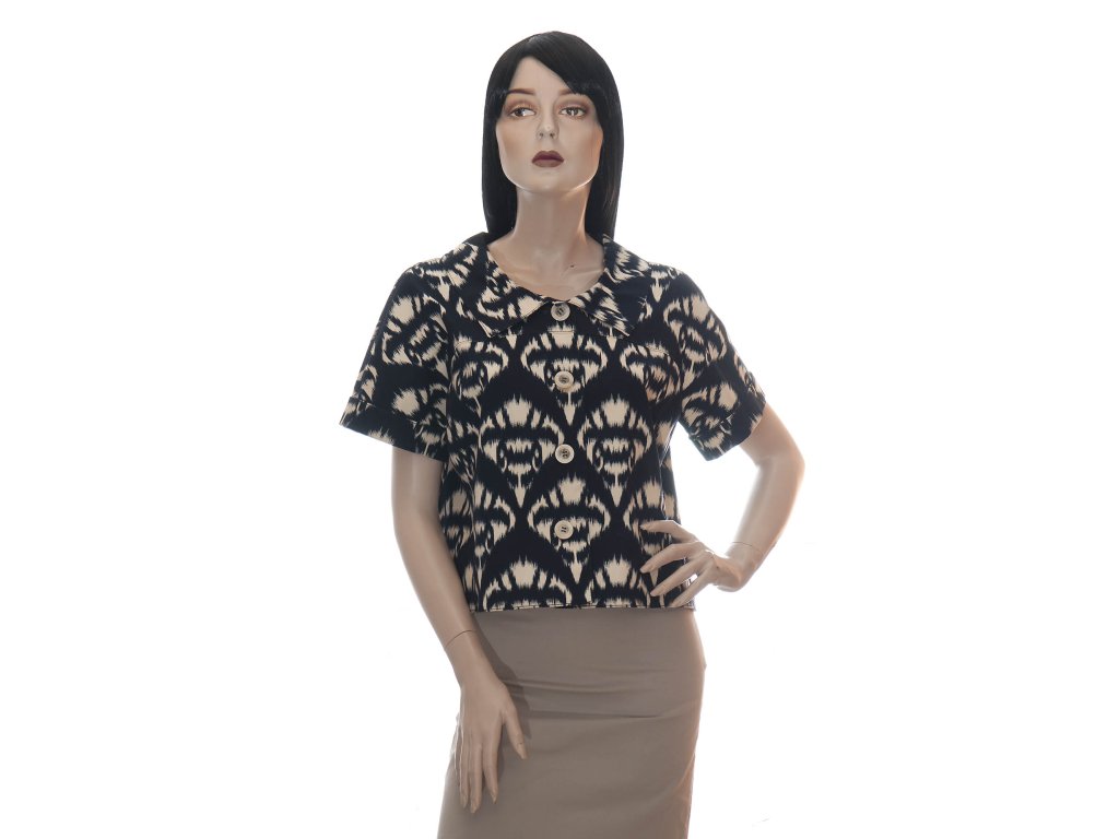 Úžasný kousek Oscar De La Renta - krátké černobílé sako. Sako je vhodné spíše pro letní dny. Krásně vypadá k lehkým dlouhým letním šatům, ale lze jej obléci i ke kalhotám.